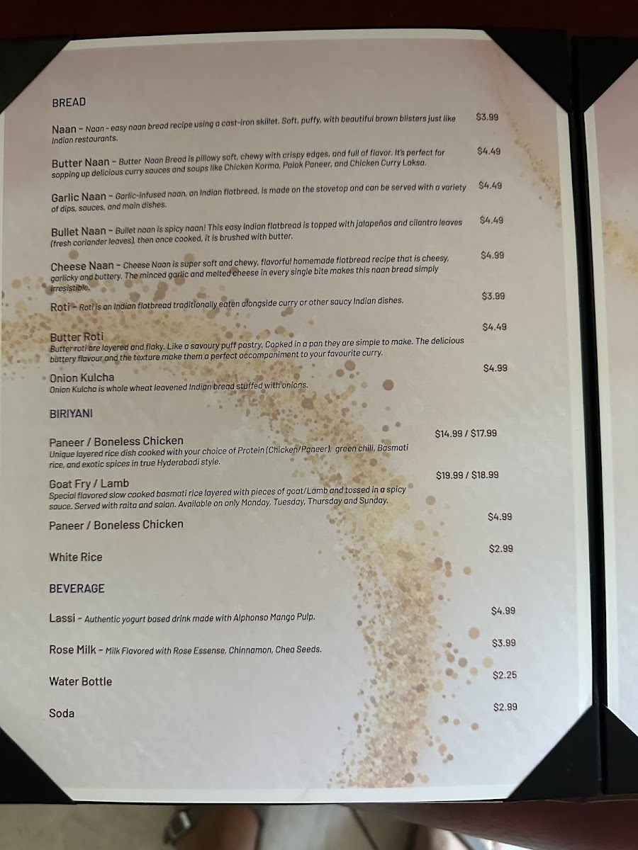“ Really delicious food. I had the Lamb Curry and my husband had the Chicken Tikka Masala. We shared an appetizer of Tandoor Paneer which was amazing. Butter Naan was freshly made for us. Just the right amount of spice in all the dishes. The lamb was so tender. The chefs are very eager to please and do a great job. They made my birthday dinner special. We will be back to try some other dishes. ”